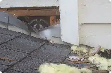 - Torn Shingles or Roof Damage – Raccoons are known to rip apart roofing, soffits, and vents to get into attics.